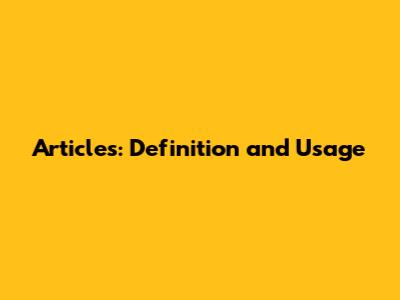 What are Articles?