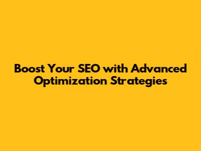 Boost Your SEO With Advanced Optimization Strategies