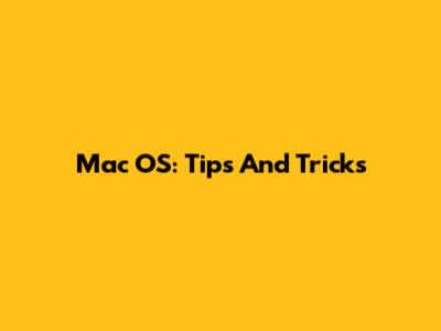 Mac OS: Tips And Tricks