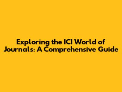 Navigating the ICI World of Journals: A Step-by-Step Guide