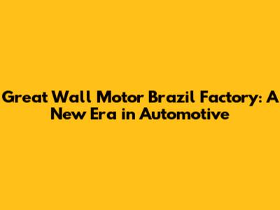 Great Wall Motor's Brazil Factory: A New Era In Automotive