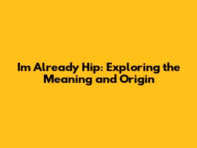 Decoding the Phrase: What Does "I'm Already Hip" Really Mean?