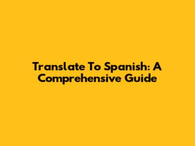 Translate To Spanish: A Comprehensive Guide