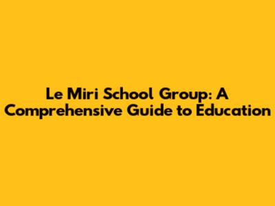 Le Miri School Group: A Comprehensive Guide To Education