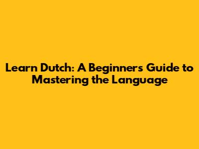 Hey guys! So, you're thinking about learning Dutch? That's awesome! It's a fantastic language with a rich history, a vibrant culture, and it's spoken by millions of people around the world. Whether you're planning a trip to the Netherlands, have a job opportunity, or just want to expand your linguistic horizons, learning Dutch can be an incredibly rewarding experience. This guide is designed to help you get started, providing you with a solid foundation in the language and some tips to make your learning journey as smooth and enjoyable as possible. We'll cover everything from basic phrases and grammar to pronunciation and cultural insights. Ready to dive in? Let's go!