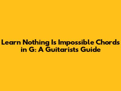 Hey everyone! Are you ready to dive into the awesome world of playing the song "Nothing Is Impossible"? This guide is all about helping you nail those chords in the key of G. Whether you're just starting out or you've been strumming for a while, this is the place to be. We'll break down the chords, show you how to play them, and even give you some tips on strumming and making the song your own. So grab your guitar, and let's get started!