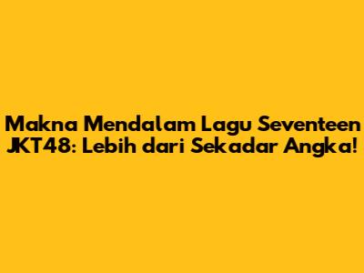 Hey guys! Pernahkah kalian mendengarkan lagu 'Seventeen' dari JKT48? Lagu ini tuh bukan cuma sekadar nyanyiin angka 17 aja, lho! Di balik melodi yang asik dan dance yang energik, tersimpan makna yang dalam banget. Dalam artikel ini, kita bakal kupas tuntas arti lagu JKT48 'Seventeen', mulai dari liriknya yang bikin penasaran, pesan yang ingin disampaikan, hingga kenapa lagu ini bisa begitu relate dengan banyak orang. Penasaran kan? Yuk, langsung aja kita mulai!