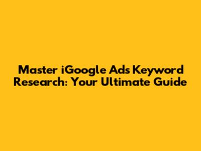 Hey guys! Today, we're diving deep into something super crucial for anyone dabbling in online advertising, especially with iGoogle Ads keyword research. You know, those little words and phrases people type into search engines to find stuff? Yeah, those are your golden tickets. Getting your keyword research right is the absolute bedrock of a successful ad campaign. It's not just about throwing some random terms at Google and hoping for the best; it’s a strategic process that can make or break your ad spend. Think of it like this: if you're selling artisanal dog treats, you don't want your ads showing up when someone searches for "cheap cat food." You want to reach the right audience, the dog lovers actively looking for premium snacks for their furry friends. That's where killer keyword research comes in. We're talking about understanding search intent, spotting opportunities, and avoiding wasted ad dollars. So, buckle up, because we're about to unlock the secrets to finding those perfect keywords that’ll drive traffic, generate leads, and ultimately boost your bottom line. We'll cover everything from understanding what keywords even are in the context of iGoogle Ads, why they're so darn important, to the nitty-gritty of how to actually find and select the best ones for your campaigns. Ready to level up your ad game? Let's get started!