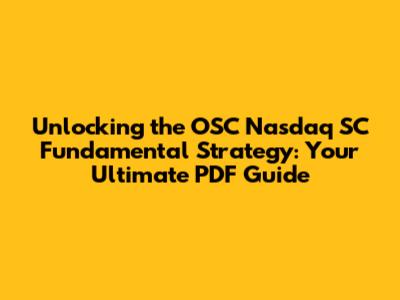 Hey guys, ever feel like navigating the stock market is like trying to find a needle in a haystack? Well, you're not alone! Today, we're diving deep into a strategy that can seriously level up your investment game: the OSC Nasdaq SC Fundamental Strategy. If you've been searching for a solid, research-backed approach to investing, especially focusing on the tech-heavy Nasdaq Composite, then this is your jam. We're talking about a comprehensive PDF guide that breaks down how to identify winning stocks using fundamental analysis. Forget chasing hot tips; this strategy is all about understanding the real value and potential of a company. So, grab your favorite beverage, get comfy, and let's unravel the secrets of the OSC Nasdaq SC Fundamental Strategy, and why having a solid PDF resource is your golden ticket to smarter investing. We'll explore what makes this strategy tick, why it's particularly potent for Nasdaq-listed companies, and how you can leverage a detailed guide to make more informed decisions.