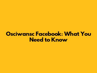 Osciwansc Facebook: What You Need To Know