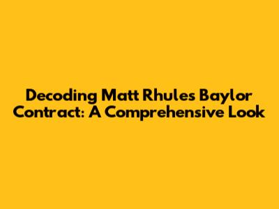 Hey guys, let's dive deep into the nitty-gritty of Matt Rhule's contract when he was coaching at Baylor University. We're talking about the financial details, the bonuses, and all the juicy stuff that usually stays behind closed doors. Understanding these contracts gives us a peek into the world of college football and how coaches are valued. So, buckle up, because we're about to explore the terms and conditions that defined Rhule's tenure at Baylor. This article aims to break down the key aspects of his contract, offering insights into the financial incentives, performance clauses, and other significant elements that shaped his time with the Bears. Let's get started!