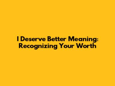 I Deserve Better Meaning: Recognizing Your Worth