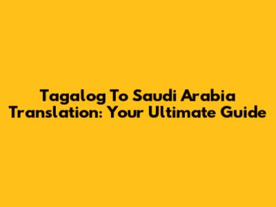 Tagalog To Saudi Arabia Translation: Your Ultimate Guide