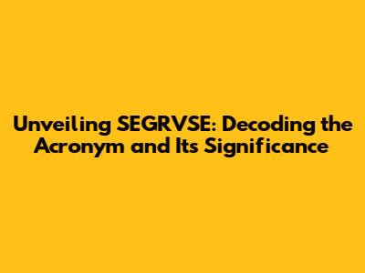 Hey everyone, let's dive into something a bit cryptic today: SEGRVSE. Ever stumbled upon this acronym and wondered, "What does SEGRVSE stand for?" Well, you're in the right place, because we're about to crack the code! This article will break down SEGRVSE, explain its meaning, and explore its significance in whatever context it's used. Get ready to have your questions answered and your curiosity piqued! So, guys, buckle up, because we are diving deep into the meaning and significance of SEGRVSE.