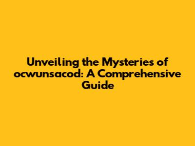 Why is ocwunsacod Important? Benefits and Applications