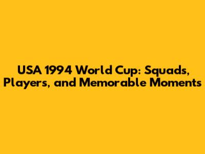 USA 1994 World Cup: Squads, Players, And Memorable Moments