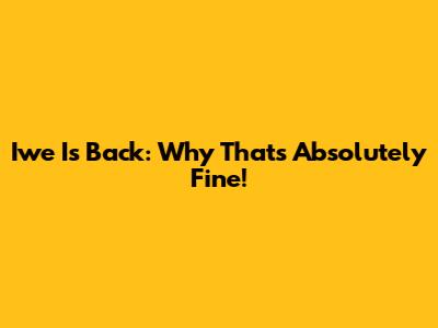 Iwe Is Back: Why That's Absolutely Fine!